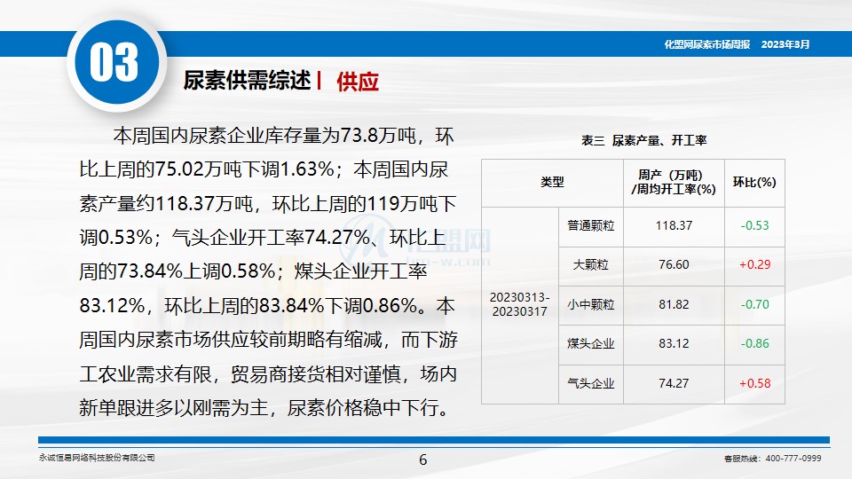 尿素周报(20230313-0317):周内尿素市场稳中下行