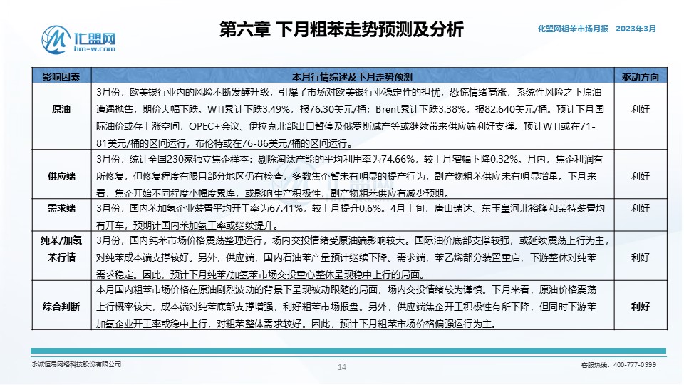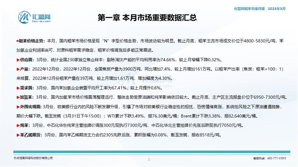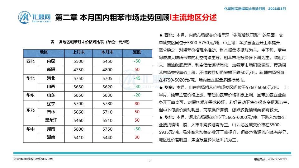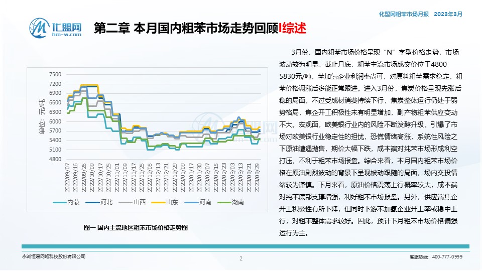 首页 资讯 化盟观点 粗苯月报(2023年3月份):市场价格呈现“N”字型走势