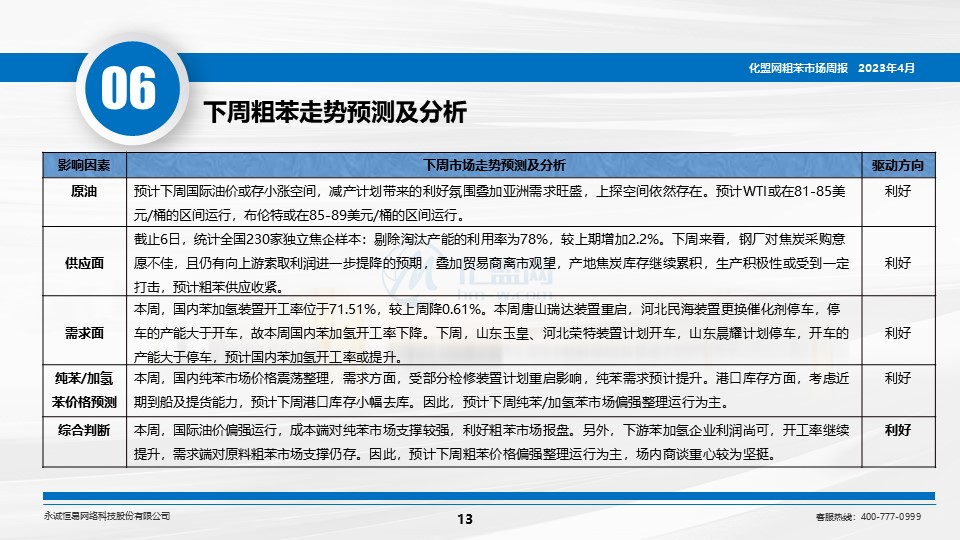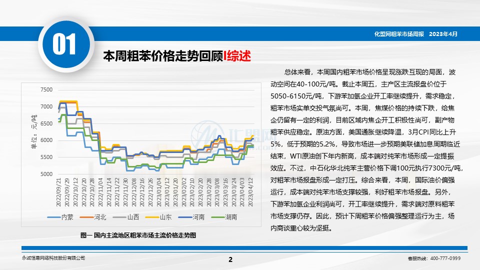 首页 资讯 化盟观点 粗苯周报(20230410-0414):呈现涨跌互现的局面,波动空间在40-100元/吨