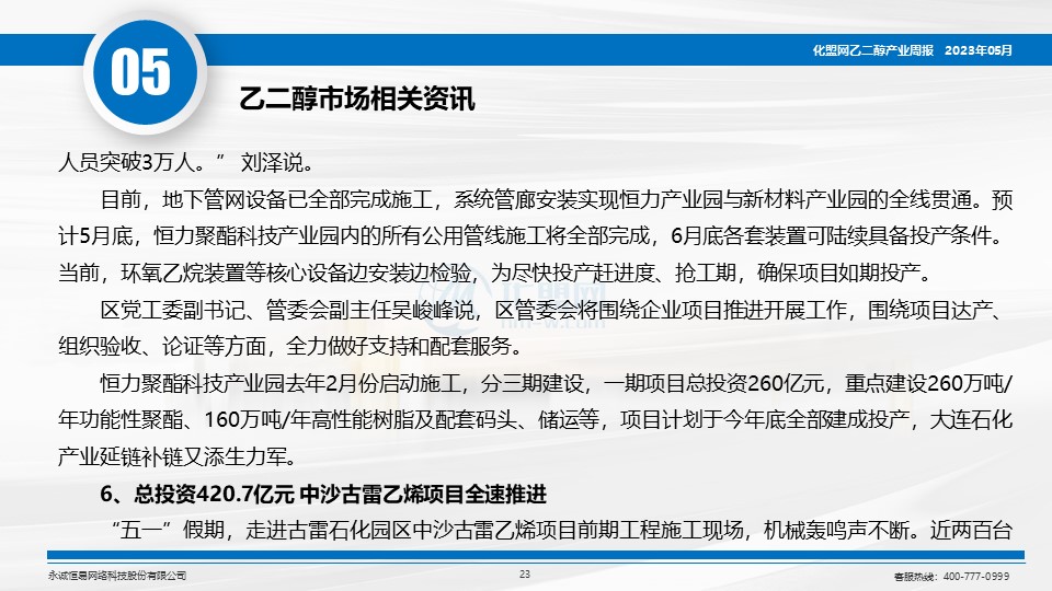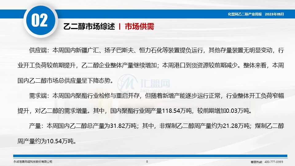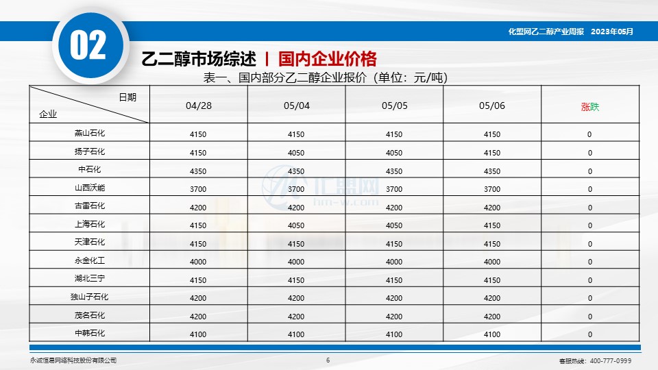 首页 资讯 化盟观点 乙二醇周报(2023.5.4-5.6):期现价格震荡上行